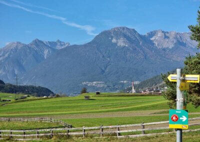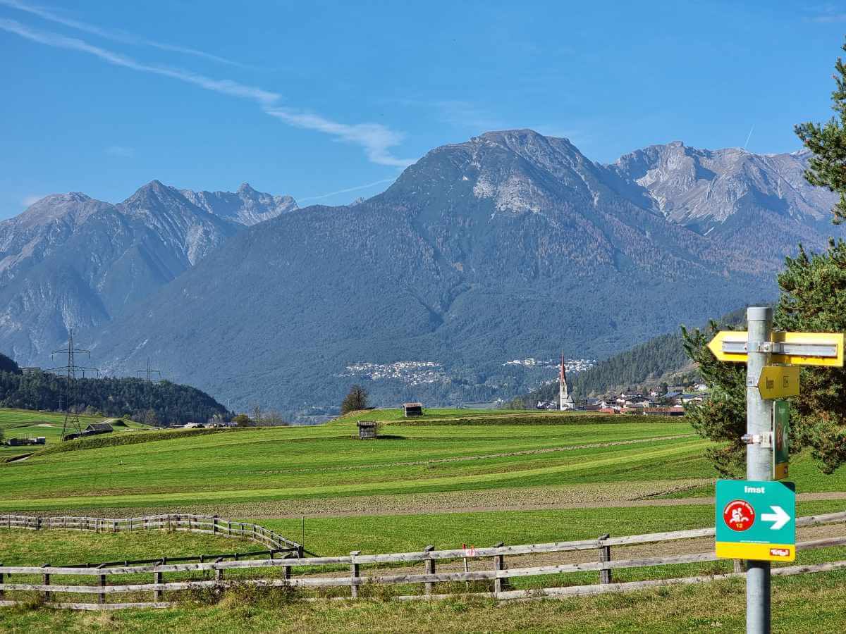 Anstatt über den Grünberg direkt nach Mötz abzufahren, queren wir beim Hotel Holzleiten die Straße und folgen dem Weg nach Arzkasten – ein echter Geheimtipp! Danach geht es bergab über Barwies und Untermieming bis nach Mötz.