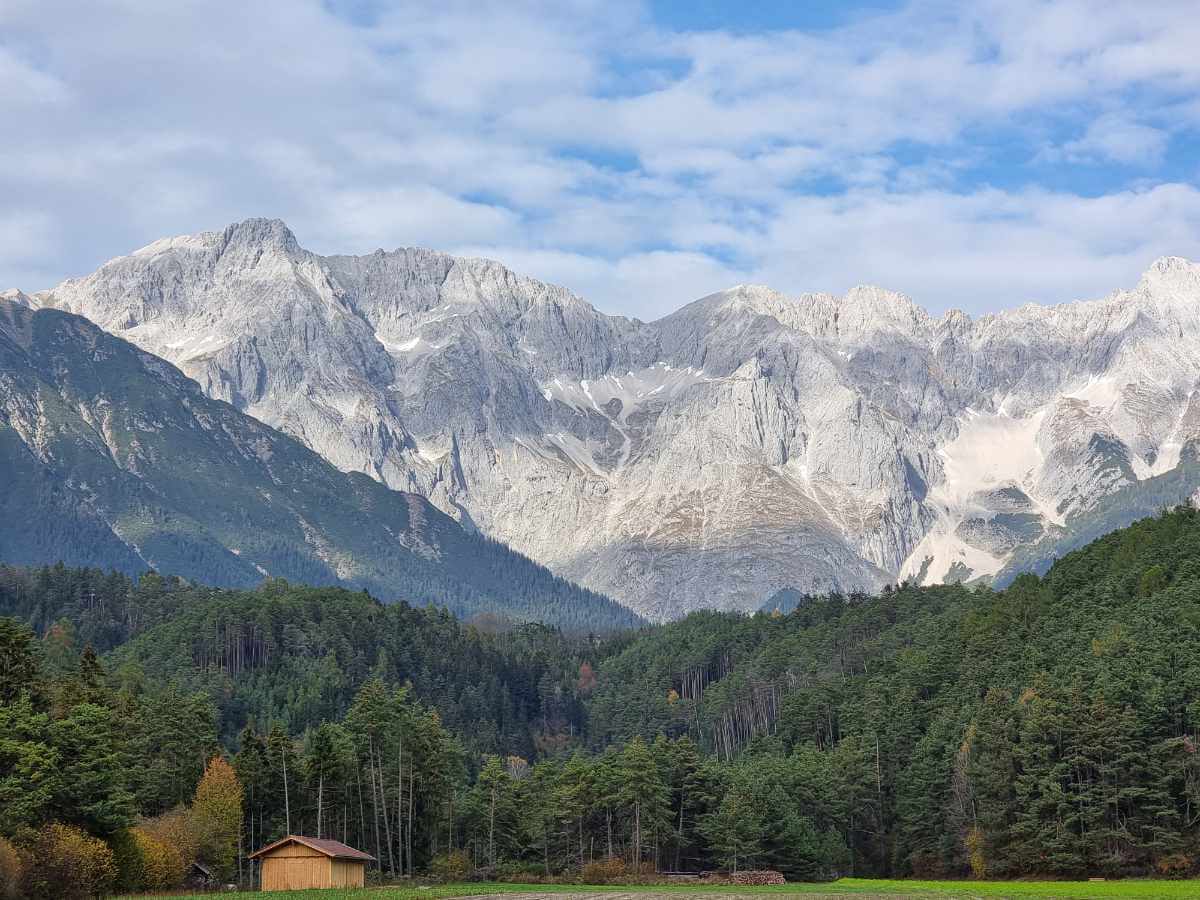 In Dormitz biegen wir links ab und folgen einem Forstweg parallel zur Holzleitenstraße. Dieser Anstieg führt uns hinauf zum sonnigen Mieminger Plateau. Oben angekommen, genießen wir die Fahrt durch den malerischen Lärchenwald bis nach Holzleiten.