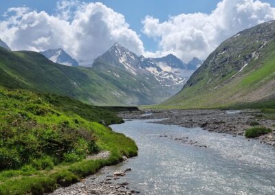Für die Rückfahrt nehmen wir denselben Weg zurück nach Obergurgl. Von dort geht es die Bundesstraße hinunter nach Sölden (der Radweg nach Obergurgl ist derzeit noch im Bau). In Sölden biegen wir bei der Gaislachkogelbahn rechts ab und wechseln auf den Ötztal Radweg, der uns gemütlich durch das Tal hinaus begleitet.