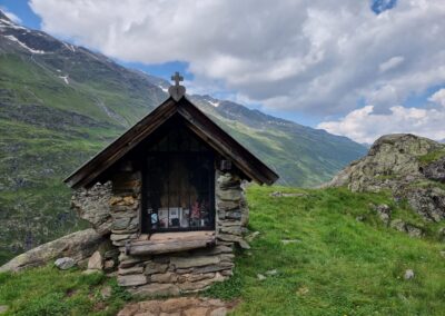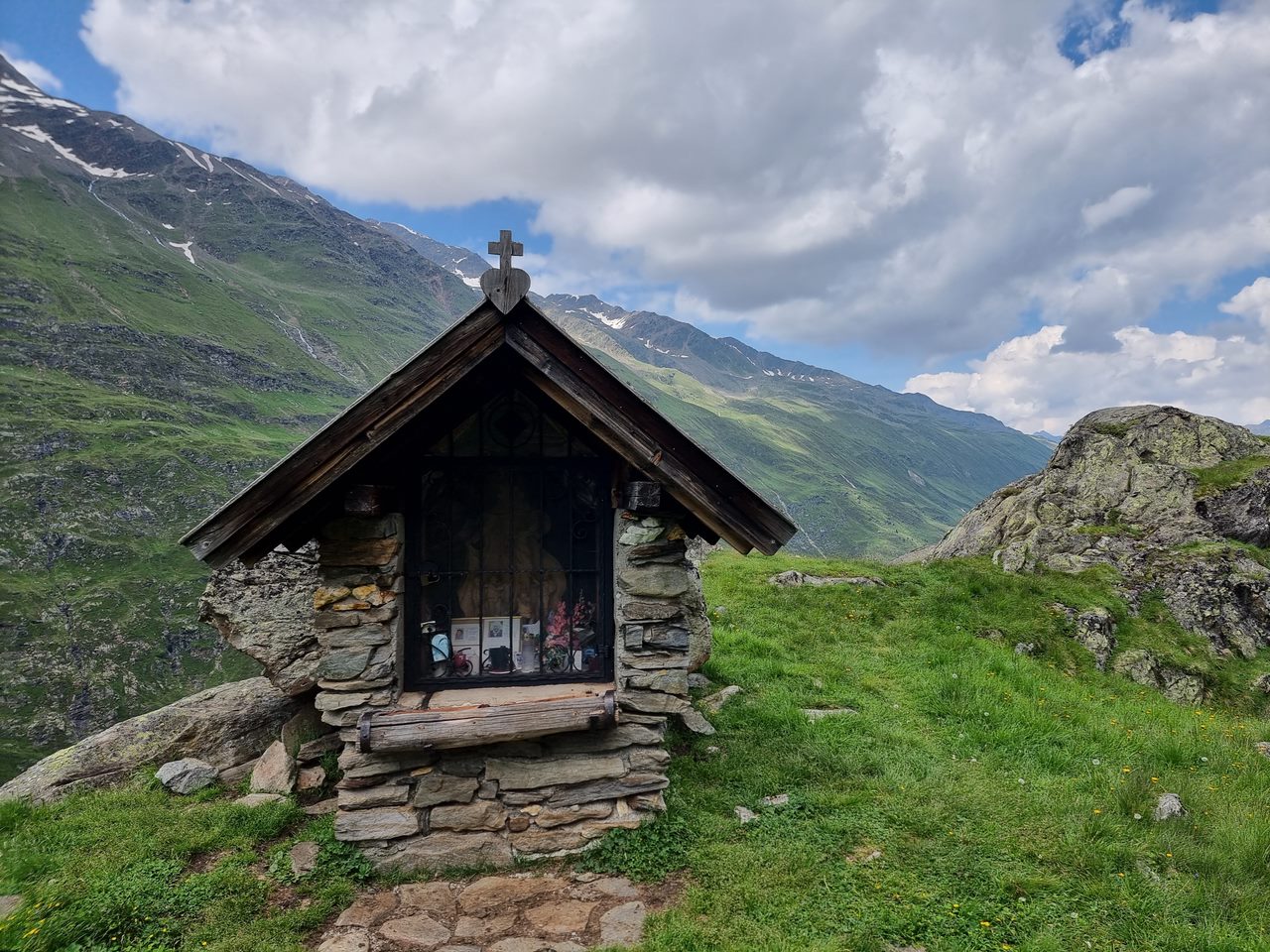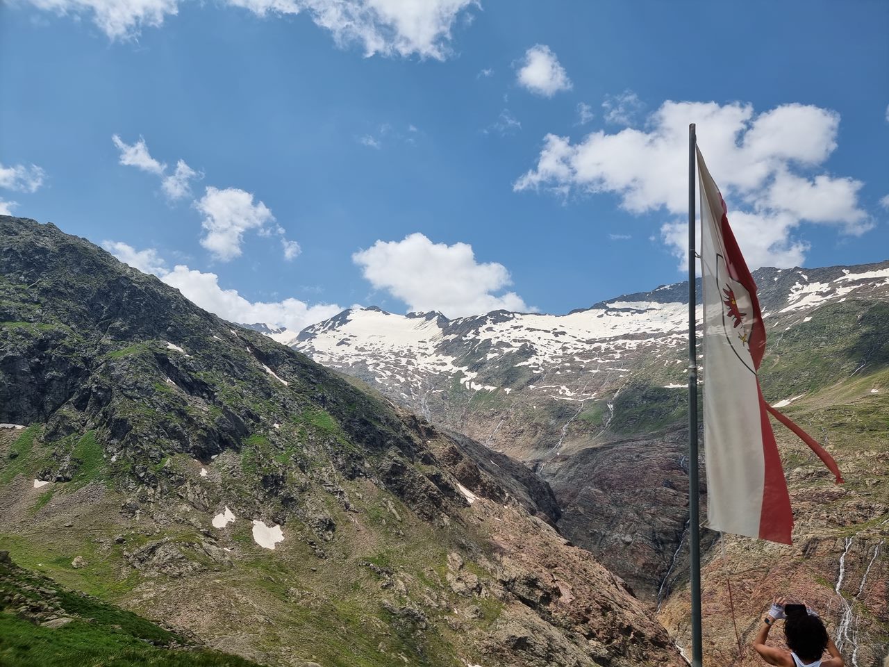 Nun folgen wir der Schotterstraße in Richtung Hohe Mut und Schönwieshütte. Entlang der Skipiste geht es stetig bergauf bis zur Mittelstation der Hohen Mut Bahn. Danach führt die Straße steiler hinauf zur Schönwieshütte, wo sich ein kurzer Halt lohnt.